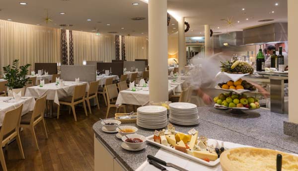 Lassen Sie Ihren Day Spa Tag mit einem köstlichen Abendessen im Residenz Restaurant in Straßenbekleidung ausklingen.