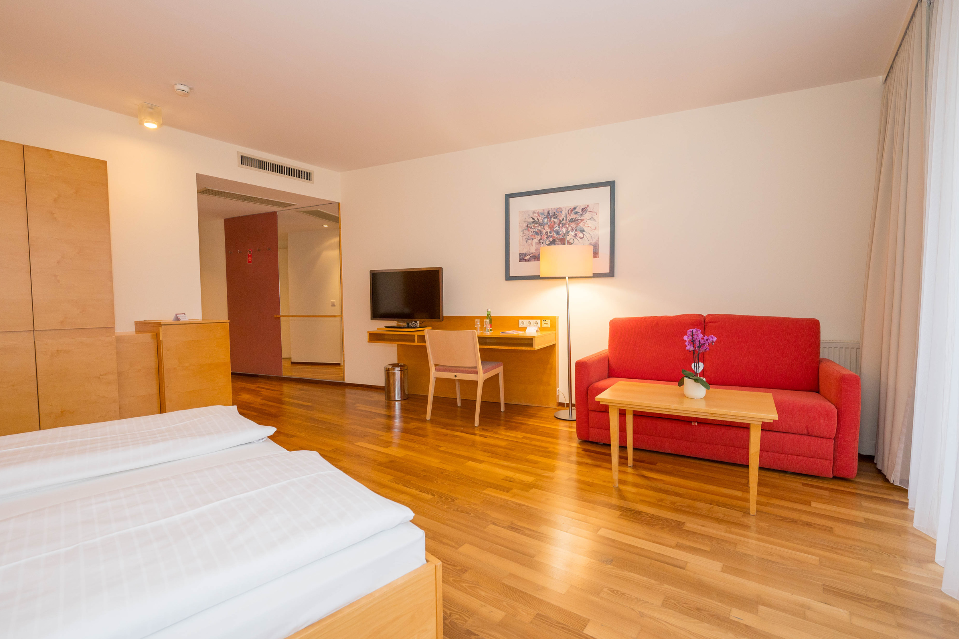 Preisberechner / BuchenFür Paare und Familien unsere elegantesten Zimmer, mit ausziehbarem Schlafsofa. 39 m² Raum und Offenheit für Ihren persönlichen Urlaubskomfort. Freundlich und hell.