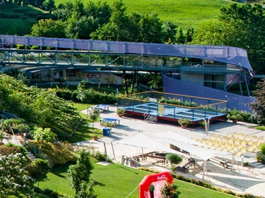 Für die etwas älteren Kids bietet der Außenbereich noch mehr Bewegung und Spaß: Auf dem Beachvolleyballplatz könnt ihr gemeinsam baggern und passen, während das 6er-Riesentrampolin für richtig viel Energie und Höhenluft sorgt. Perfekt für alle, die sich gern austoben und ihre Thermenzeit mit Action unter freiem Himmel füllen möchten. *derzeit witterungsbedingt gesperrt