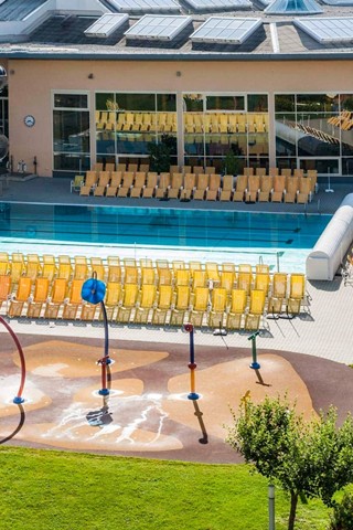 Die Sicherheit eurer Kinder hat für uns höchste Priorität. Unsere Bademeister:innen sind aufmerksam vor Ort, können jedoch die Aufsichtspflicht nicht ersetzen. Bitte legt Kindern, die nicht (sicher) schwimmen können, bereits bei Betreten des Bades Schwimmhilfen an und behaltet sie jederzeit im Blick – besonders in Wasserbereichen und bei hohem Betrieb. Für eine unbeschwerte & sichere Thermenzeit.
