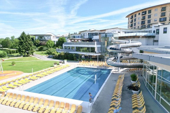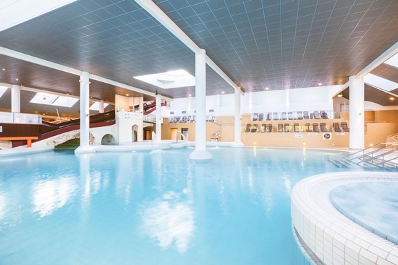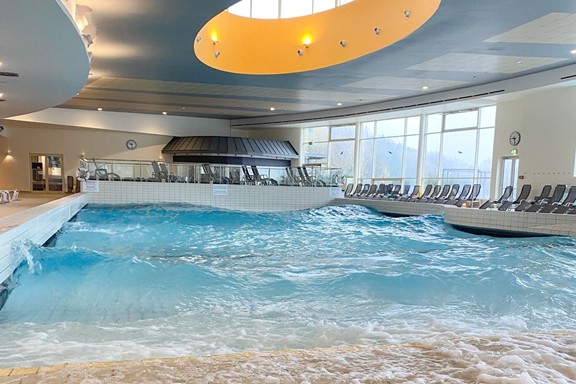Unser Hauptbecken bietet euch alles, was einen vielseitigen Thermenmoment ausmacht: Schwimmen, Relaxen, Massagedüsen, Sprudelzonen und eine gemütliche Grotte mit Zugang zum Wildbach. Im warmen, sanften Thermalwasser könnt ihr eure Muskulatur lockern und euch einfach treiben lassen. Auch im Außenbereich genießt ihr wohltuende Wärme und viele entspannte Augenblicke.