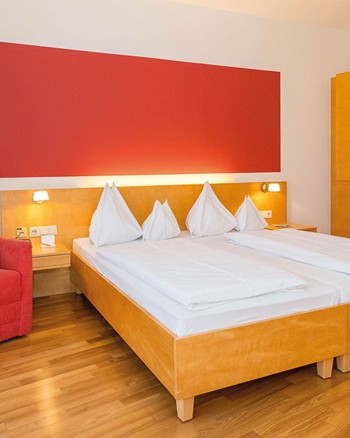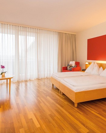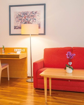 Für Paare und Familien unsere elegantesten Zimmer, mit ausziehbarem Schlafsofa. 39 m² Raum und Offenheit für Ihren persönlichen Urlaubskomfort. Freundlich und hell.
